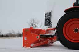 Land Pride’s SBD3596 3-point Snow Blowers are designed to fit tractors in the 85 to 125 HP range. One look at the aggressive dual augers, manufactured from 3/8″ plate steel, and you’ll know the SBD35 is built to withstand the rigors of snow and ice removal in tough conditions. Beyond the dual 16″ augers, the SBD35 is manufactured with 1/4″ side plates and utilizes four paddles on the augers to direct snow into the 34″, 4-blade impeller. Skid shoes are available in rear-mount or side mount and are adjustable and replaceable.